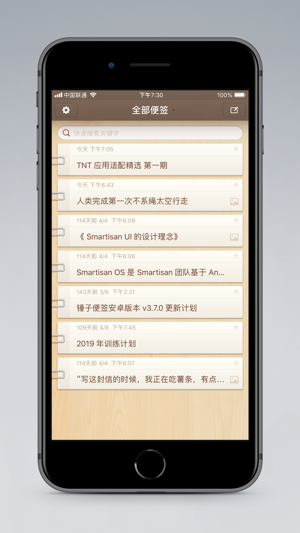 锤子便签与普通便签真的不同,它深深体现了老罗的情怀。为什么这么说呢?且看刚刚开启 App 的时候,印入眼帘的是舒服的原木色调的背景,搭配灰白色便签,左侧像曲别针一样的设计很逼真,仔细观察每个便签内还做了深浅颜色区隔设计,有层次,整体界面是舒服的。四条 Tips 提示便签的使用方式,不会让人感觉摸不着头脑,能感受到即便这是一款不会说话的应用,但它也在努力的对人进行情绪引导,让使用的人也心情舒畅。