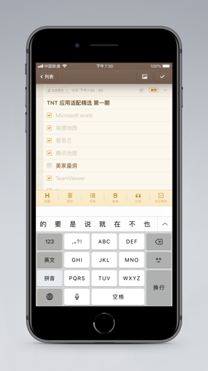 1、支持待办清单、图片、文字格式,让你不仅能够记录待办,还可以轻松实现杂志般精美的排版;