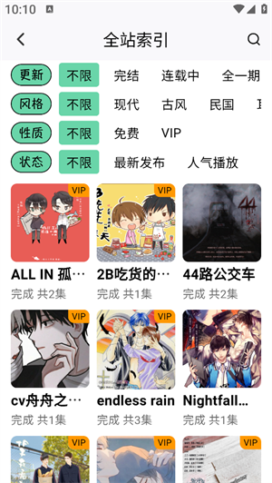 分类浏览清晰: 按照题材、热度、更新状态等多维度分类,用户快速定位感兴趣的内容。