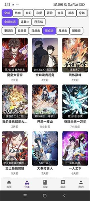 多维筛选查找: 支持按题材分类、更新状态、热度等多维度筛选,快速定位心仪作品。