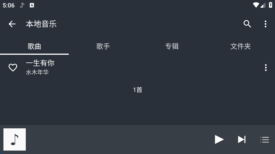 1、打开绿乐app,软件会自动开始扫描并添加歌曲到本地音乐中,扫描完成后,点击最下方的本地音乐
