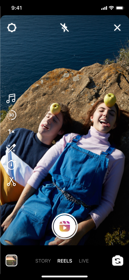 打开Ins APP,点首页右上角「+」 ,选择「Reel」,最后从相册中选现成的视频或直接点击拍摄按钮录制新视频