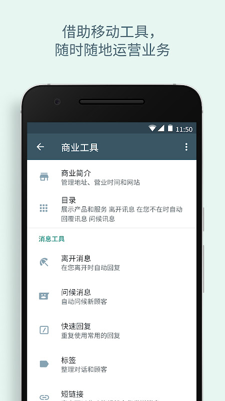 高效工作。让应用代劳可以帮助您节省工作时间!给顾客发送自动快速回复和离开消息,绝不错失任何争取顾客的机会。