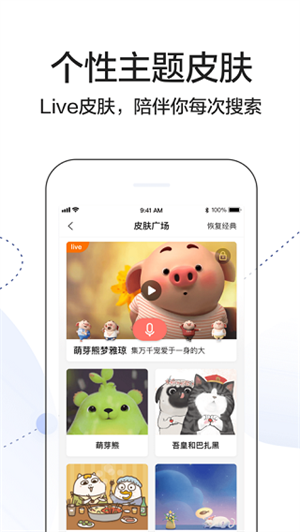 Live主题皮肤首发:热门IP动态呈现,国民表情包在线卖萌。换个皮肤,换个心情。好看,好玩。