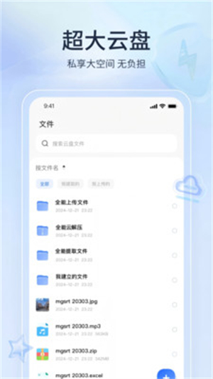 全能网盘app是一款专业的云存储软件,提供免费存储空间,支持全格式文件的上传与管理。采用端到端加密技术保护数据安全,具备自动分类整理功能,并支持断点续传等实用特性。软件提供多种登录方式,支持自动备份、文件分享以及多设备同时登录,全方位保障数据的私密安全与使用便捷性。