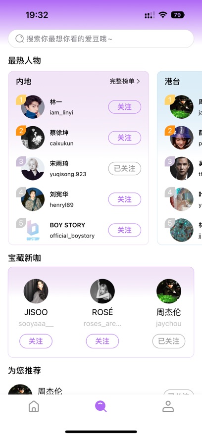 关注自己的偶像,即可随时观看ta近期更新的同台内容