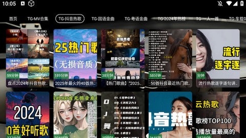 TG音乐台TV版由Box壳魔改开发而来,能在电视和手机上通用,歌曲和MV资源非常丰富,全都可以免费听、免费看,音质画质也非常清晰。软件对接的是B站接口,还提供多个播放源,不用担心资源失效。用户搜索的结果是以歌单形式呈现的,能让用户一次性听到多首同类型的歌曲