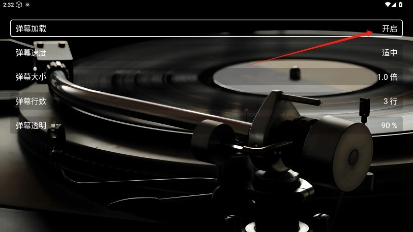 3、将弹幕加载选项打开,即可边听边看弹幕