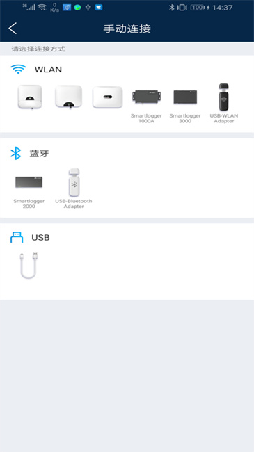蓝牙模式需要使用对应的蓝牙模块,并且是在手机蓝牙与蓝牙模块连接成功后,才可以通过SUN2000连接机器设备
