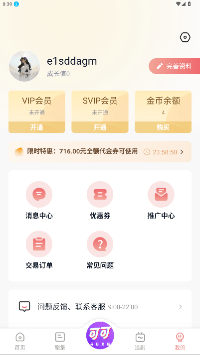 1、点击我的进入个人中心