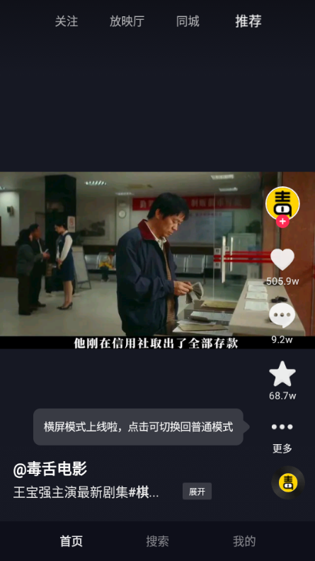 软件下载安装之后名为抖音短视频,不用担心,它就是内置独立的放映厅功能的这个版本
