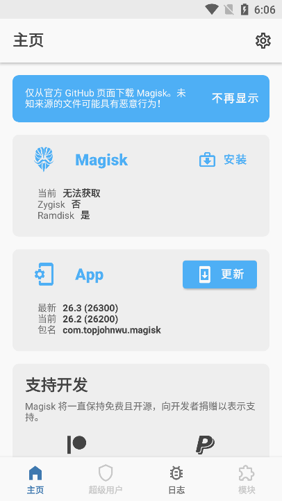 Magisk中文模块下载地址:https://apk.magisk.vip/