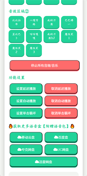 我的刀盾语音盒是一款以网络流行梗“我的刀盾”为主题的语音工具App,支持延迟播放、单击触发、循环播放等多种音效输出方式。内置海量抽象风格语音包,内容持续更新优化,适用于各类聊天场景。该应用紧跟网络亚文化潮流,让用户随时调用热门梗语音,为日常交流增添无厘头的欢乐氛围。