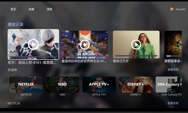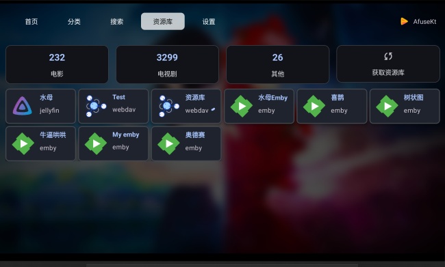 afusektv也就是AfuseKt 的TV版本,安装包升级到了1.4.4-10243-01最新版本,修复了闪退和mpv播放焦点的问题,也支持在绝大电视上使用,为用户带去了纯净舒适的大屏观影环境,用户可以导入多种格式的视音频,自定义网盘进行挂载刮削,在登录账号之后还可同步AfuseKt移动端的资源库,绝对可以满足用户日常的播放需求