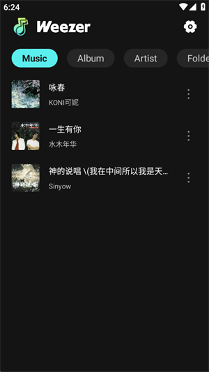 Weezer是一款专为音乐爱好者打造的本地音乐播放器,致力于为用户提供纯净、高清、无干扰的手机听歌体验。软件能够自动检索手机存储中的音乐文件,快速建立本地音乐库,让用户可以轻松管理和播放自己收藏的歌曲。支持高清音质播放,忠实还原音乐细节,满足对音质有要求的听众。所有功能完全免费,界面清爽无任何广告打扰,让听歌回归纯粹。Weezer还具备智能搜索与个性化推荐功能,可根据用户的收听习惯推荐可能喜欢的本地歌曲,帮助发现被遗忘的宝藏曲目。界面设计简洁直观,操作便捷顺手,支持播放列表创建、歌曲分类、歌词显示等多种音乐操作,让用户随时随地畅享属于自己的音乐世界。