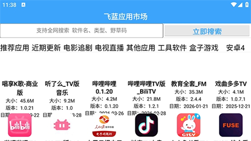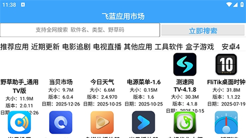 1、一款电视应用市场软件,在本站下载安装飞蓝市场Pro