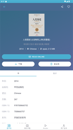 3、任意点击一本书籍可以查看封面、简介、出版社、出版年份、评分等信息