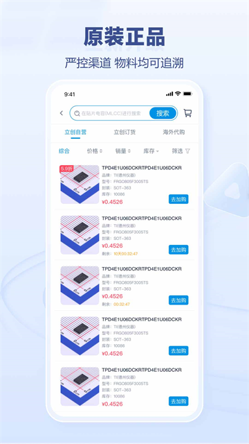 立创商城一款现货元器件交易平台软件,平台拥有超7万平方米现代化仓库,现货库存超20万种,涵盖芯片、集成电路、分立器件、无源器件、连接器及MRO工业品等,所有产品均从原厂或正规代理商渠道采购,确保原装正品。立创商城以4小时闪电发货的强大物流能力,有效解决了样品采购与小批量采购的难题,成为推动电子行业研发智造的重要基础设施,提供高效、可靠的供应链支持,助力科技创新与产业升级。