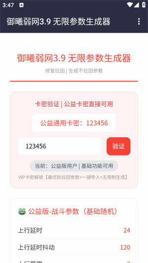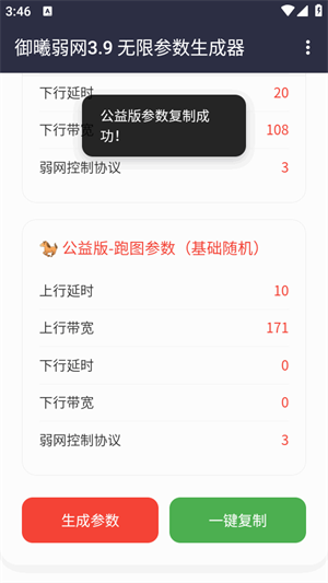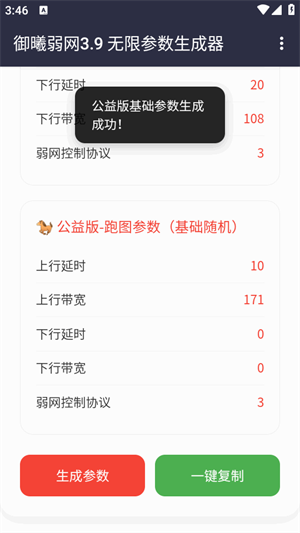 御曦AI参数生成3.9是一款专为弱网环境打造的网络优化工具,通过智能参数调整让网络连接变得更加丝滑顺畅,显著提升各类应用的网络体验。软件支持实时监测网络变化,动态调整优化策略,确保在网络波动时依然保持稳定连接。全程免费使用,无任何内购项目与隐藏收费,所有功能完全开放。工具提供静态与动态两种注入模式,用户可根据自身需求灵活选择,无需手动搭建复杂的网络环境,开箱即用。数据展示全面透明,优化参数支持自定义配置,使用方便灵活,能够有效改善游戏、视频、直播等应用的网络体验,让弱网环境下的使用感受大幅提升。