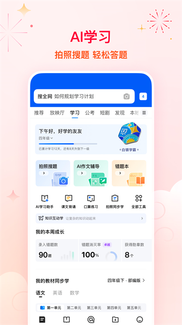 拍照搜题,多语翻译:不会的题,拍下来;看不懂的外文,翻译过来。省事,不费劲。