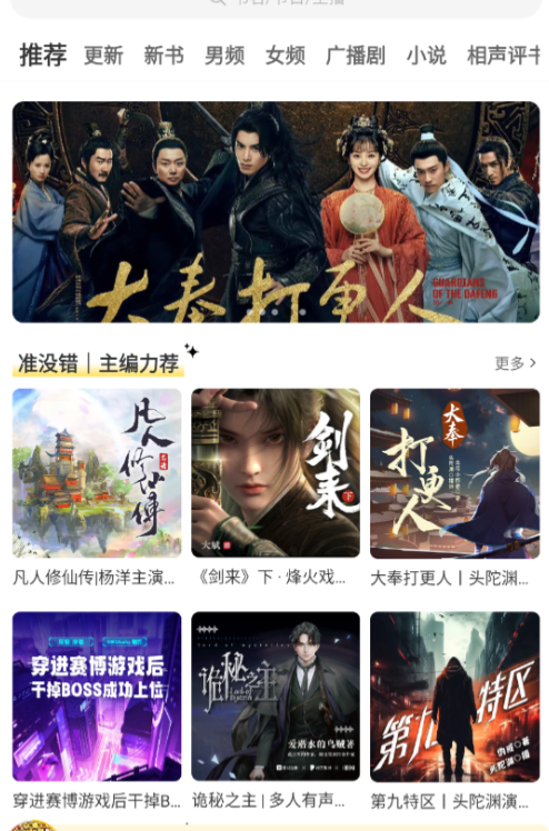 各类当下受欢迎的小说,随时同步上新:热门、新书、经典——都有。不愁没得听,不愁没得选。