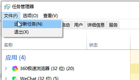 3、在任务管理器左上方单击【文件】,选择【新建运行任务】。