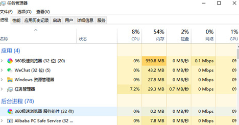 2、打开任务管理器,可以看到电脑不是真的黑屏,因为任务管理器可以正常调出。