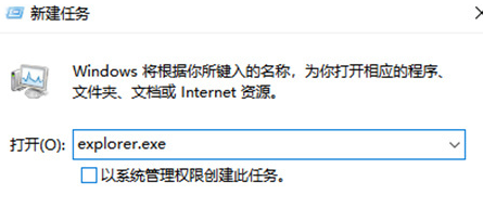 4、出现新建任务下方输入【explorer.exe】,然后单击【确定】即可。