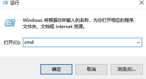 2、进入系统按开始键,打开【运行】窗口,输入【cmd】回车确定。