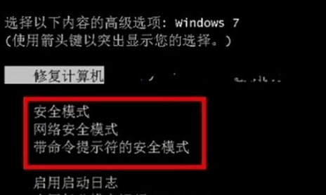 1、电脑开机后快速间断的敲击F8键,选择【安全模式】启动。