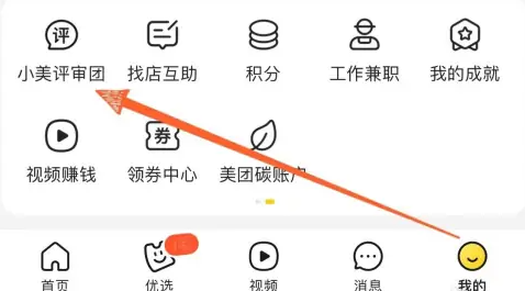1、在手机上打开美团进入【我的】页面后点击【小美评审团】。