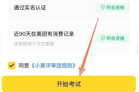 3、查看自己是否满足页面上所展示的条件,完全符合的话点击【开始考试】并完成5次答题就可以申请成功了。