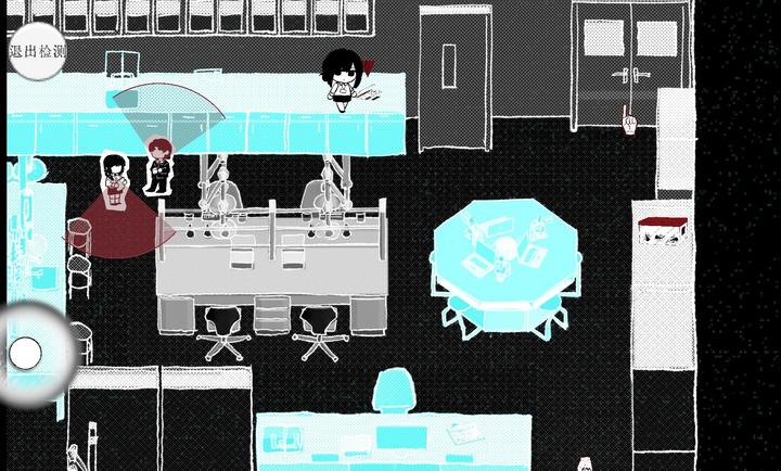 3.借助左下角虚拟摇杆操控角色移动,避开NPC红色扇形视野区域放置窃听器。