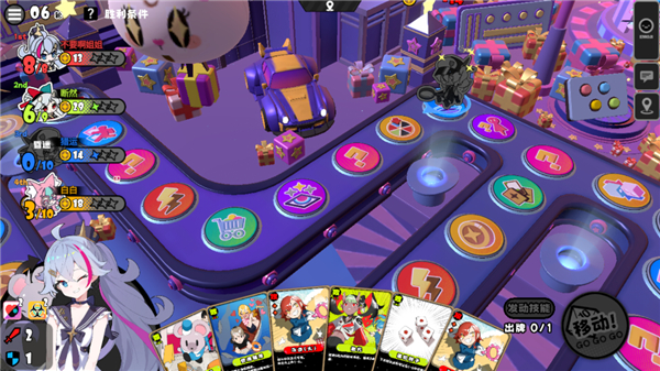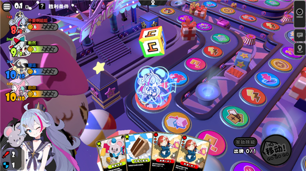 游戏开局,每位玩家立足初始点,按行动顺序轮流掷骰子,骰子点数决定移动步数,且仅在自身回合能使用卡牌与技能。