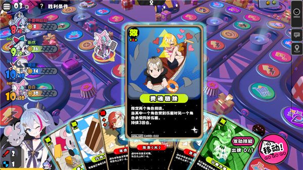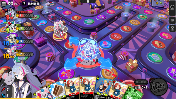 在直线路段与单向转弯路段,玩家移动方向固定(卡牌效果和技能除外);在多向转弯路段,玩家可自由选定前进方向。