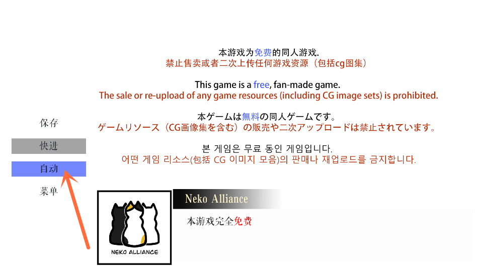 2.游戏剧情采用视觉小说形式呈现,可点击左侧自动选择按钮,让剧情自动播放。