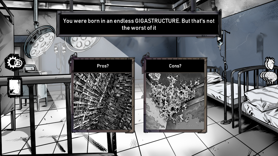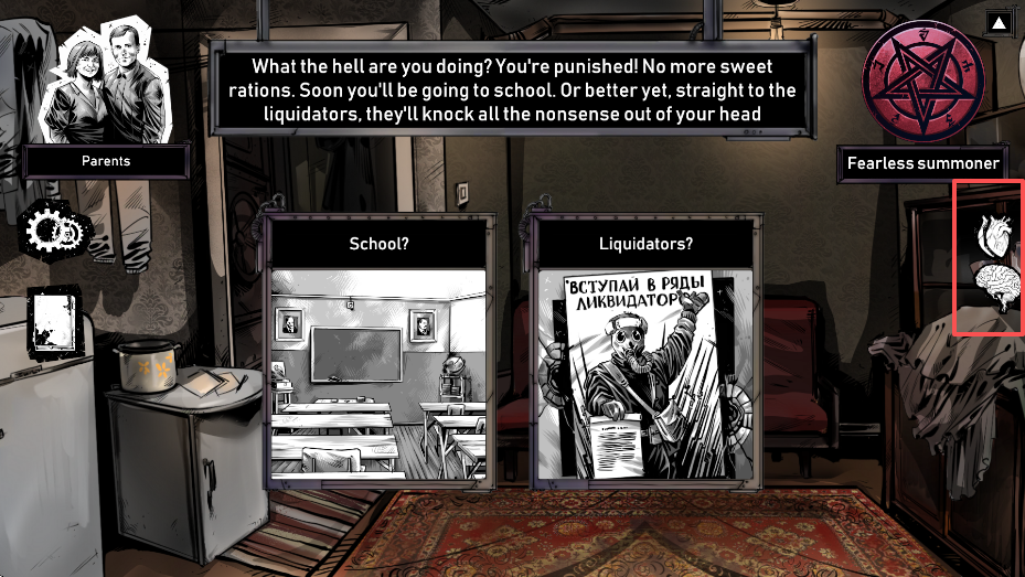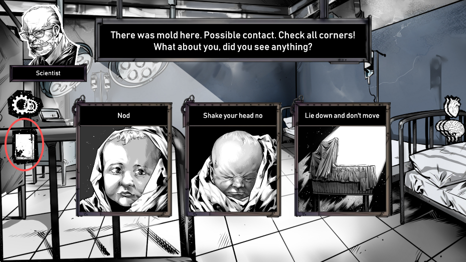 6.留意屏幕右侧的“心脏”与“大脑”图标,部分选择会使它们数值增减。