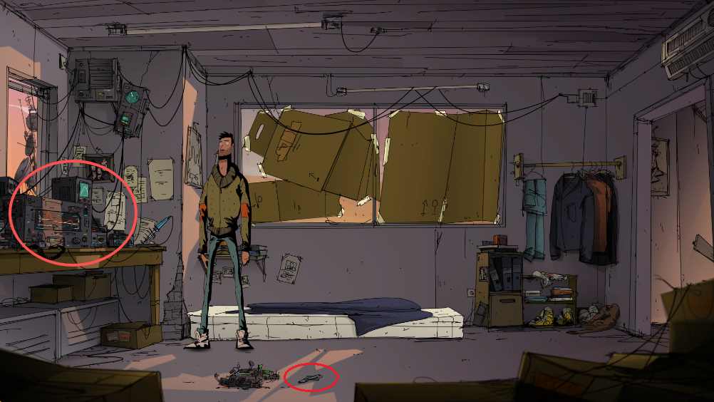 3.地上散落的零件可拾取,桌上收音机可接收外界讯息,玩家要仔细甄别有用信息。