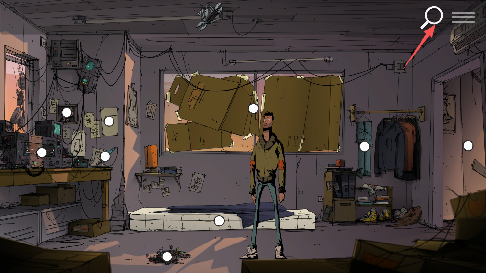 5.点击屏幕上的“放大镜”图标,就能查看场景中所有可交互的物品。