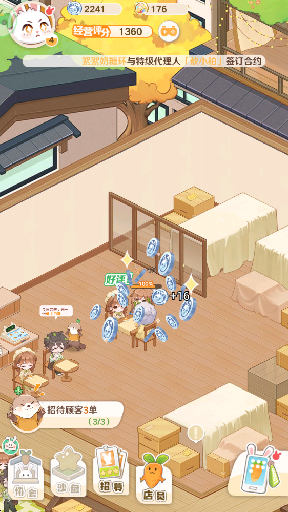 3.店员培养与装修策略:优先招募兔灵和猫族店员,重点培养SR级店员陆。定期给店员升级换装提高效率。装修时统一风格,高评分装修能吸引消费力强的顾客。