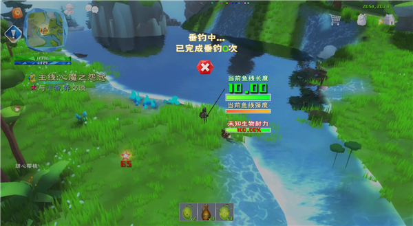 2.在钓鱼商人处买好鱼竿,找木属性boss打掉其瘟疫球刷虫卵,站在有水处,攻击键旁会出现钓鱼键。开始钓鱼后,按住方向键轻上下拖动控制鱼线强度,保持在中间,出现狂暴警告就松手再重新控制。