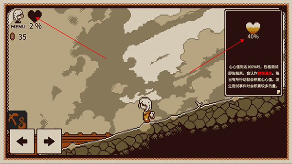 5.持续进行游戏操作提升心心值,当数值达到100时即可通关并知晓性格。