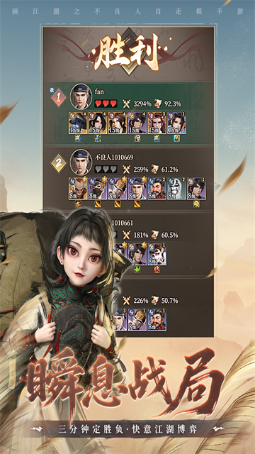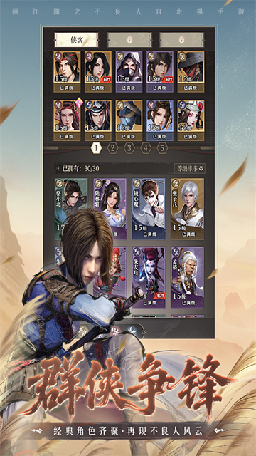 4、多阵营羁绊搭配:侠客分阵营羁绊,组合丰富,套路多变,可玩性强。