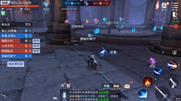 4.活动里要时刻留意界面顶部双方宝石数及左侧宝石情况,均衡对抗重策略。宝石落后时协力击杀敌方宝石最多者,领先时保护我方宝石最多者,配合元素技能可逆转局势。