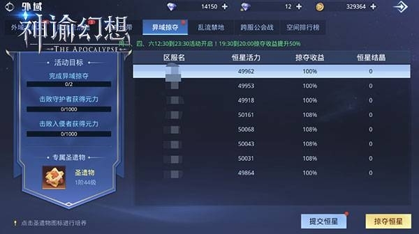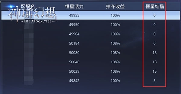 5.19:30 - 20:00掠夺收益提升50%,此时间段有几率获恒星结晶,且不同时段外域服务器会刷出或消失恒星结晶。