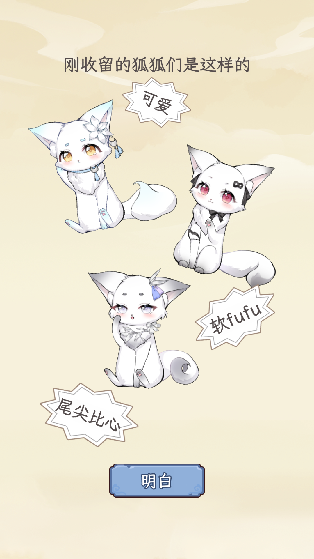 1.初次进入游戏的伙伴,可提前浏览未来将收养小狐狸的精美立绘。