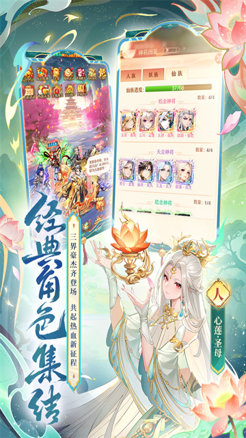 在《少年西游记》中,共有三个阵营:人族、妖族、仙族,三个阵营各有如孙悟空、猪八戒、沙悟净、牛魔王、铁扇公主、王皇大帝、王母娘娘等威猛的神将和阵容特点。每个神将都有阵营归属,神将的缘分大都由同阵营的神将激活,所以少年们应该在开局确定好神将的阵营,才能有针对性的配齐阵容,快速的强大起来。