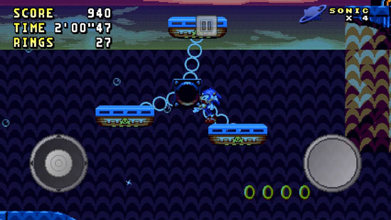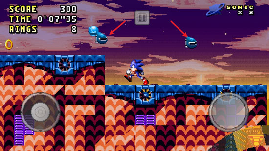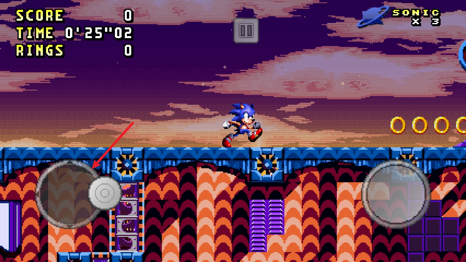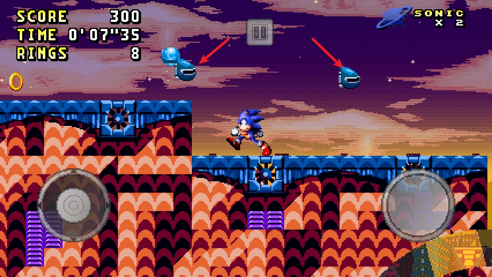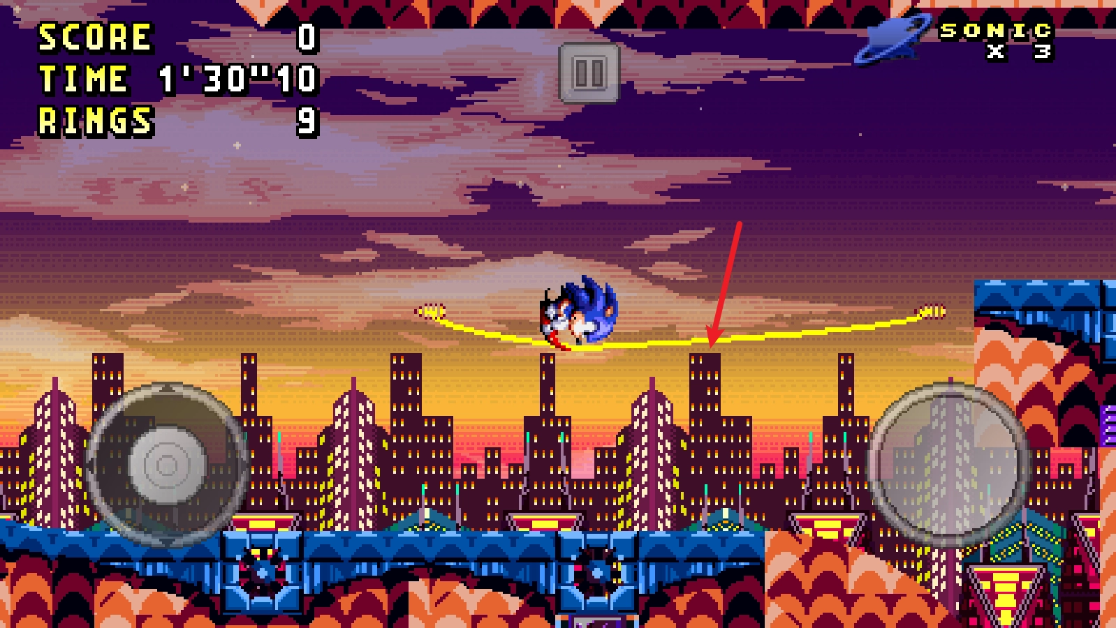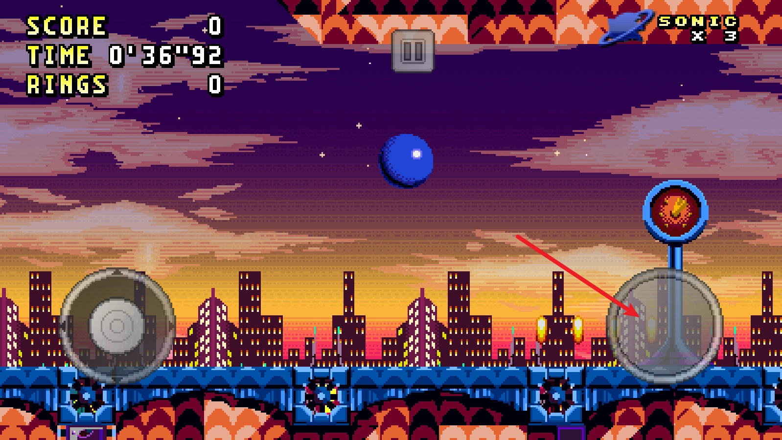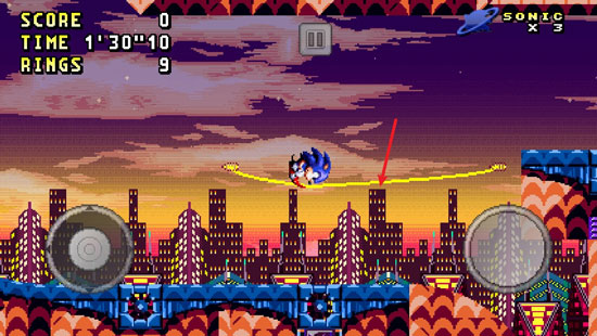 2.右侧设有按钮,轻点可让索尼克跳跃,长按能跳得更高。