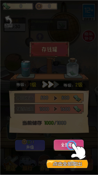 2.点击存钱罐,准备管理游戏资金。