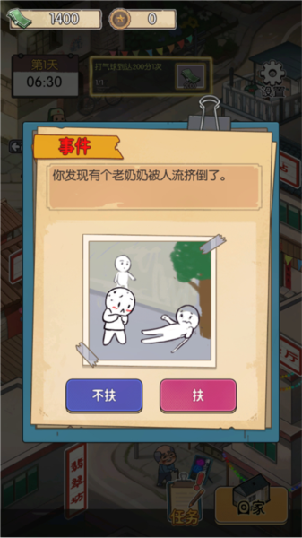 9.返回遇随机事件,选对获钞票奖励。